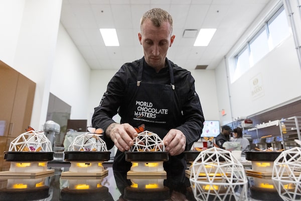 Jeremy Monsel prepares his pastry play presentation during the World Chocolate Masters North America Selections in Montreal on Thursday, May 30, 2024.Evan Buhler/The Globe and Mail