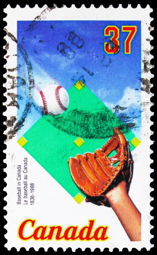 This 37-cent commemorative stamp, designed by Les Holloway of Toronto, marks the 150th anniversary of the earliest recorded baseball game played on June 4, 1838, in North America.Alexander Mitrofanov/Alamy Stock Photo