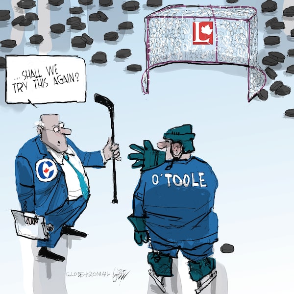 The Conservatives’ new leader, Erin O’Toole, scores an overtime goal – and captures the team’s spirit