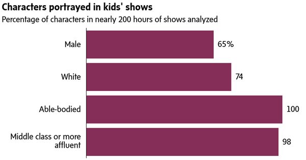 Just one-third of characters in kids’ shows are female, the exact same ratio as a similar study from a decade earlier. Almost none are shown with physical disabilities, nearly all appear to be at least middle class, and only a quarter racially diverse, the 2017 review found. The gap also exists off-screen, where most directors, creators and writers are male.