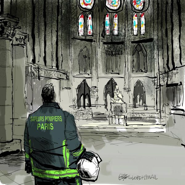 “It’s devastating. This is our soul,” Marie Hélène Dubreu told Globe correspondent Paul Waldie as she came to view the cathedral on the banks of the Seine River. A few metres away, two dozen university students sofly sang Ave Maria.