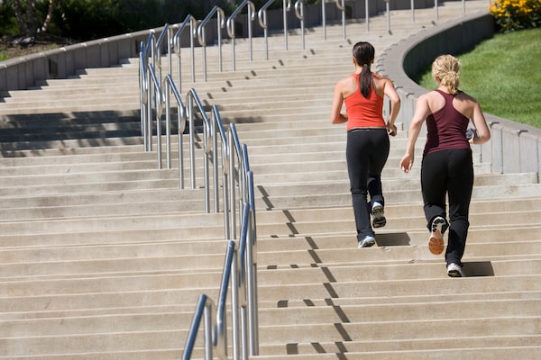Two young women exercising by running up steps.Edward J Bock III/Getty Images/iStockphoto