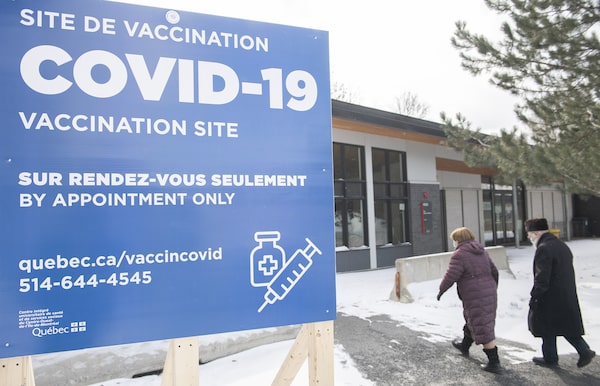 People are shown at a COVID-19 vaccination site in Montreal, Sunday, March 14, 2021, as the COVID-19 pandemic continues in Canada and around the world.Graham Hughes/The Canadian Press