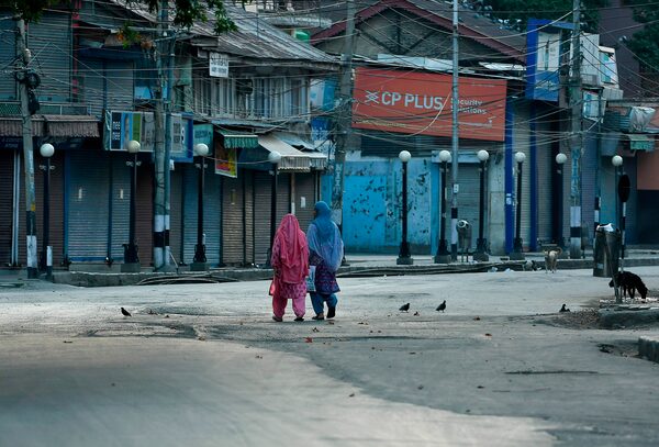 Women walk before a curfew in Srinagar on Aug. 4, 2020. The curfew was imposed across Indian Kashmir just two days before the first anniversary of New Delhi's abolition of the restive region's semi-autonomy, officials said late Aug. 3, citing intelligence reports of looming protests.TAUSEEF MUSTAFA/AFP/Getty Images