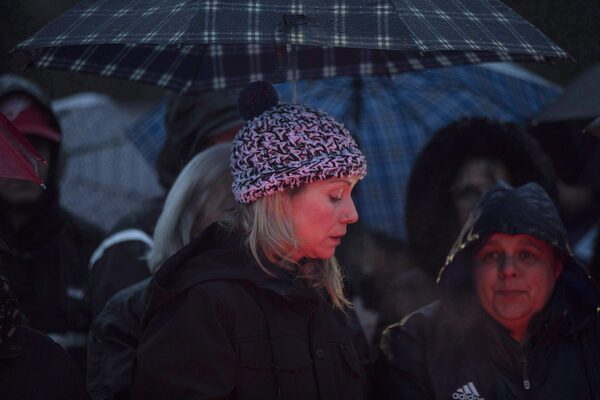 Michelle Hanson attends a vigil for her son Kaden Young in Belwood, Ont., on April 25, 2018.Chris Young/The Canadian Press