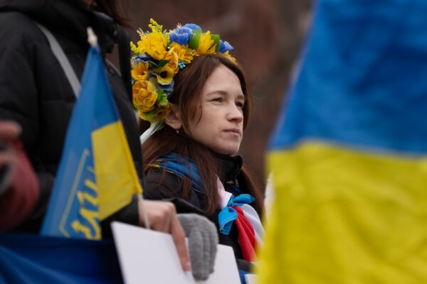A demonstrator wearing a Ukrainian wreath, or vinok, takes part in a rally in Halifax on Feb. 23.Darren Calabrese/The Canadian Press