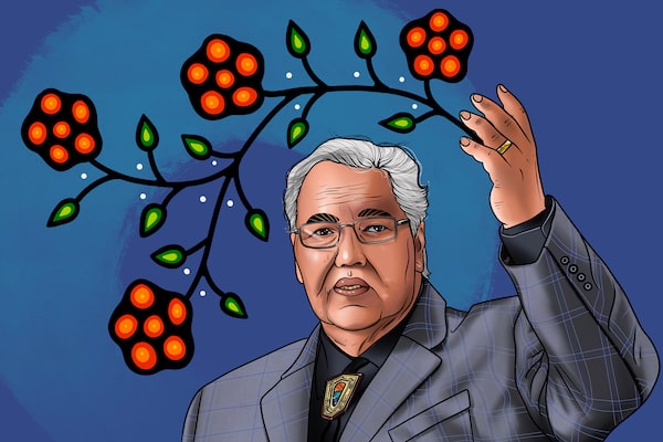 This portrait of Murray Sinclair, by Chippewa and Potawatomi artist Chief Lady Bird, was commissioned for a Globe and Mail series on Indigenous leadership in 2021, when the soon-to-be-retired senator spoke about education as the most important step in decolonization. ‘We must question what we’ve been taught and explore the possibilities of how things should be in the future.’Illustration by Chief Lady Bird