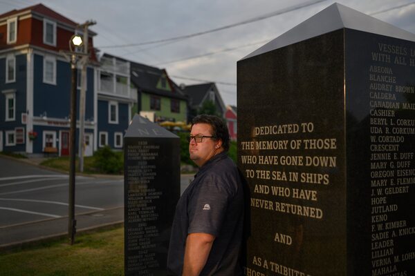 Erin Anderssen's husband, Joel Crouse, looks out from the Fisherman's Memorial in Lunenburg, N.S., where his brother Kelly and others who lost their lives at sea are remembered.Darren Calabrese/The Globe and Mail