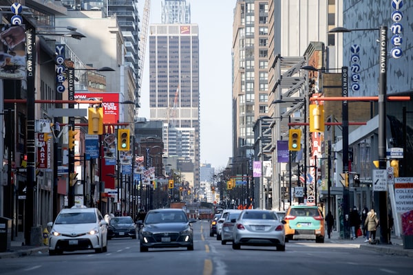 People and storefronts on Yonge St., March 3, 2021.Fred Lum/the Globe and Mail