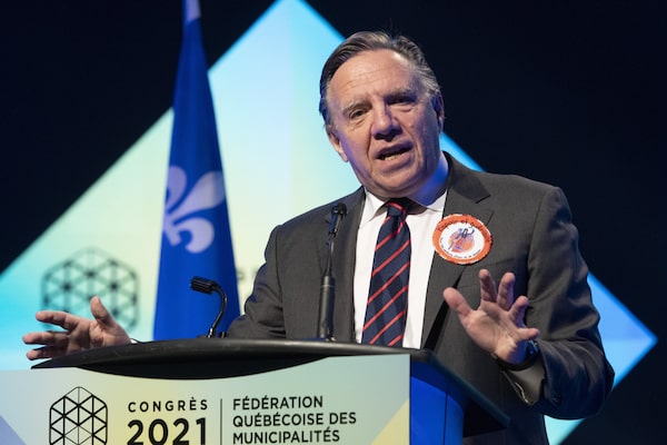 Quebec Premier François Legault speaks at the opening of the Fédération Québécois des Municipalités annual congress in Quebec City on Sept. 30, 2021.Jacques Boissinot/The Canadian Press
