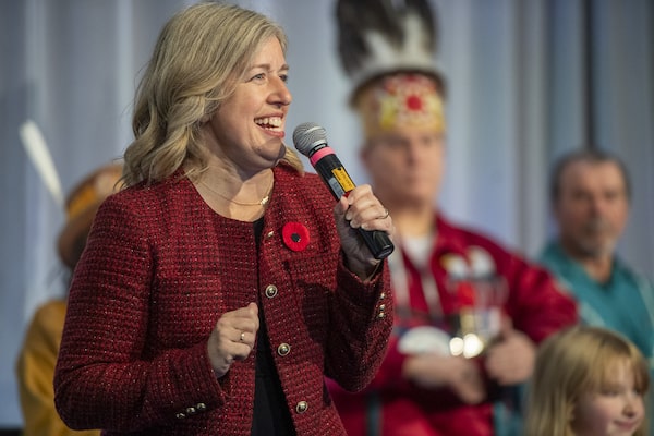 New Brunswick Premier Susan Holt speaks during the reception which followed the swearing-in ceremony for her and her new cabinet in Fredericton on Nov. 2.Michael Hawkins/The Canadian Press