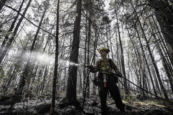 Firefighter Kalen MacMullin of Sydney, N.S., in Shelburne County, N.S., on Thursday, June 1, 2023.HO/The Canadian Press