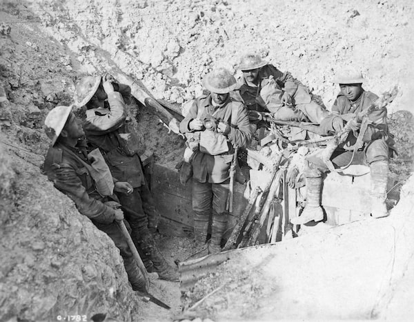 Canadians take a break in a captured German trench during the Battle of Hill 70 in August 1917.George Metcalf Archival Collection/Canadian War Museum