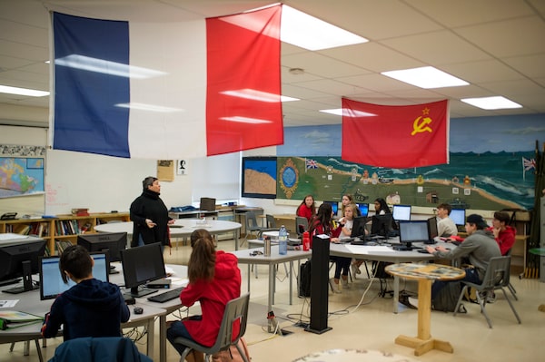 Colleague Chantal Séguin teaches her history classes in French. “These kids fall in love with their soldiers,” she says. “They say ‘my soldier’ and ‘my guy’ all the time. They’re going to remember this.”