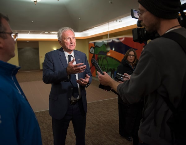 New Brunswick Progressive Conservative Party Leader Blaine Higgs speaks with media after the leaders debate at St. Thomas University in Fredericton on Oct. 16, 2024.Stephen MacGillivray/The Canadian Press