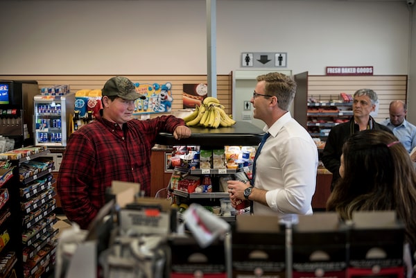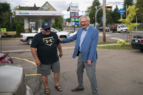 The Liberals' Mr. Gallant speaks with a supporter at a gas station during an impromptu stop in Moncton.Darren Calabrese/The Globe and Mail