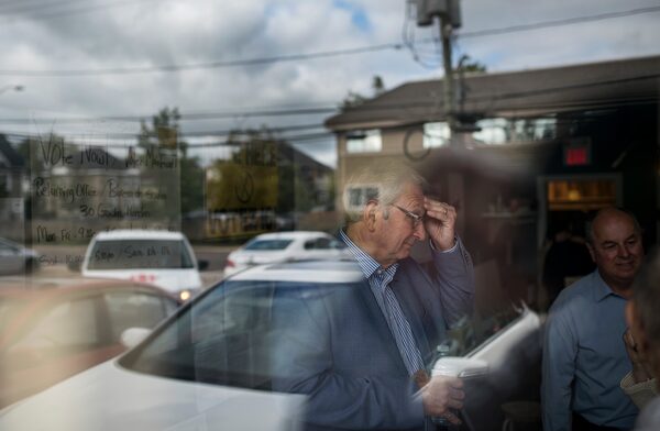 Mr. Higgs is seen through the window of a constituency office following a campaign announcement in Moncton.Darren Calabrese/The Globe and Mail