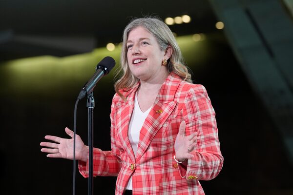 New Brunswick Premier Susan Holt speaks with reporters before the first ministers meeting at the National War Museum, on March 21, in Ottawa.Adrian Wyld/The Canadian Press
