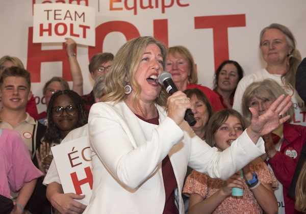 New Brunswick Liberal Leader and premier-elect Susan Holt speaks to supporters in Fredericton, on Oct. 21.Stephen MacGillivray/The Canadian Press