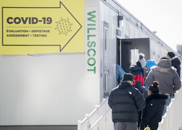 People wait in line to get tested for COVID-19 at a clinic in Montreal, on March 7, 2021.Graham Hughes/The Canadian Press