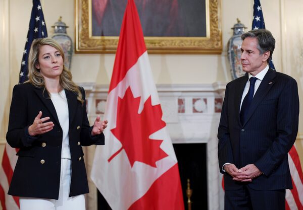 Foreign Minister Mélanie Joly meets with U.S. Secretary of State Antony Blinken at the State Department in Washington on Nov. 12.OLIVIER DOULIERY/AFP/Getty Images