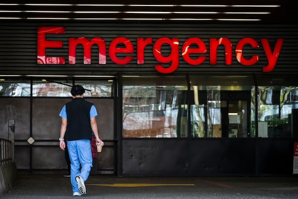 A healthcare worker walks past the emergency bay outside of Vancouver General Hospital on March 26.Jennifer Gauthier/The Globe and Mail