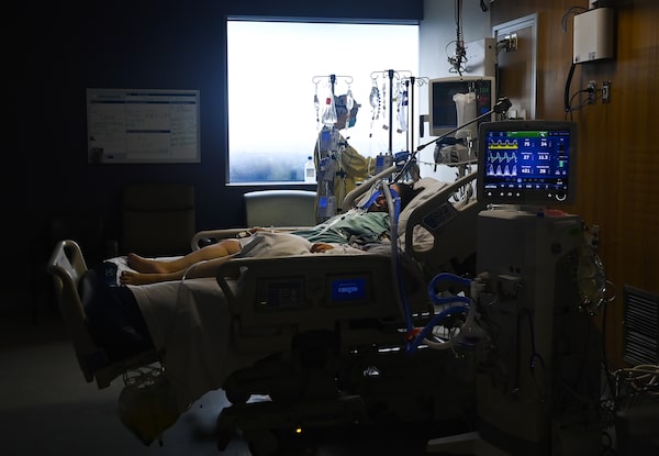 Registered nurse Claire Wilkinson working in the intensive care unit at the Humber River Hospital in Toronto on April 13, 2021.Nathan Denette/The Canadian Press