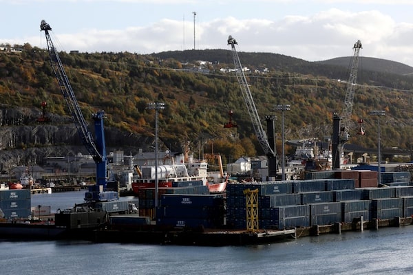 Shipping containers sit in port in St. John's on Oct. 17, 2018.CHRIS WATTIE/Reuters