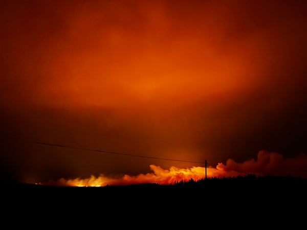 An out-of-control wildfire is shown near Musgrave Harbour, N.L., just before midnight on Sunday.Kyle Gaulton/Supplied