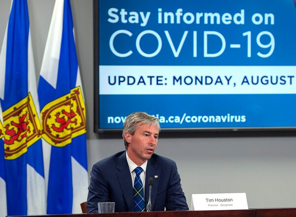 Premier-designate Tim Houston attends his first COVID-19 briefing after the Progressive Conservatives won last week's provincial election, in Halifax on Aug. 23.Andrew Vaughan/The Canadian Press