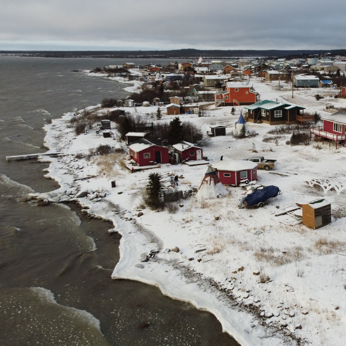 Wind whips along the shores of the Northwest Territories’ Great Bear Lake as Délı̨nę is blanketed in the season’s first snowfall. The fly-in Dene community, located just below the Arctic Circle, is the only settlement on one of the biggest lakes in the world.
