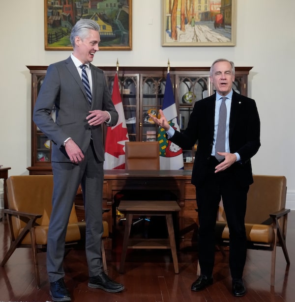 Premier R.J. Simpson, left, and Prime Minister Mark Carney met in Ottawa last November, when the federal government promised new money for dentistry in the Northwest Territories.Adrian Wyld/The Canadian Press