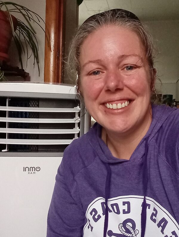Julie Leggett poses for a selfie with her air conditioning unit in her New Glasgow, N.S., home, in a recent handout photo.Julie Leggett/The Canadian Press