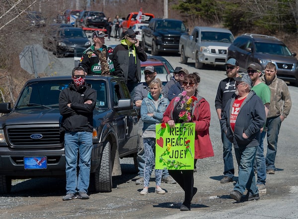Friends of Joey Webber pay their respects at his residence in Wyses Corner, N.S. on Saturday, April 25, 2020.Andrew Vaughan/The Canadian Press