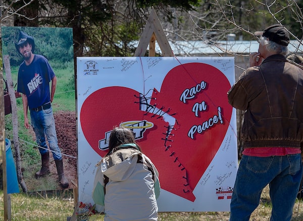 Friends of Joey Webber head to pay their respects at his residence in Wyses Corner, N.S. on Saturday, April 25, 2020. Webber was shot and killed when he stopped to assist at the place where RCMP Const. Heidi Stevenson was gunned down.Andrew Vaughan/The Canadian Press