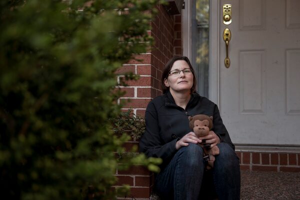 Karen Saweczko holds her daughter's stuffed animal after returning from walking her four children to Park West school in Halifax's Clayton Park neighbourhood on Friday morning, Sept. 21, 2018.Darren Calabrese/The Globe and Mail
