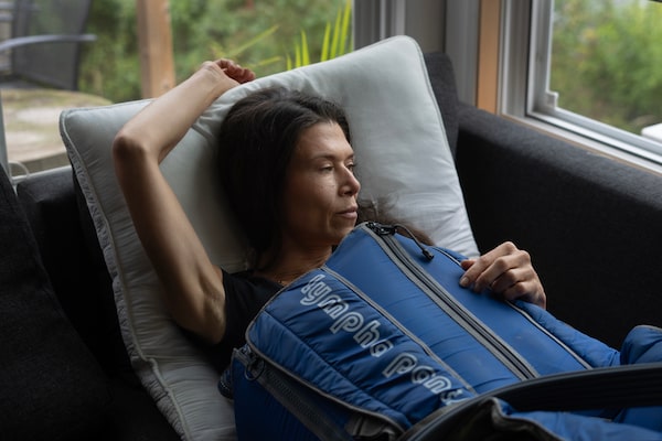 Jennifer Brady, who suffers from lymphedema, undergoes her daily treatment in a device called a Lympha Press at her home in Halifax, on Sept. 19.Darren Calabrese/The Canadian Press