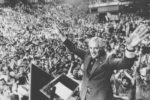 June 16, 1984: John Turner raises his arms triumphantly at the Liberal convention in Ottawa that selected him as Pierre Trudeau's successor as prime minister.The Canadian Press