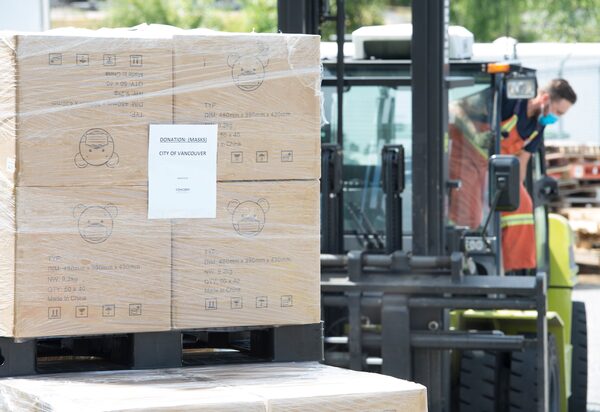 Thomas McSorley of the city of Vancouver unloads a delivery of 200,000 masks at a Vancouver city depot on June 3, 2020. The federal government is launching a one-stop shop for Canadians hoping to load up on COVID-19 supplies.JONATHAN HAYWARD/The Canadian Press