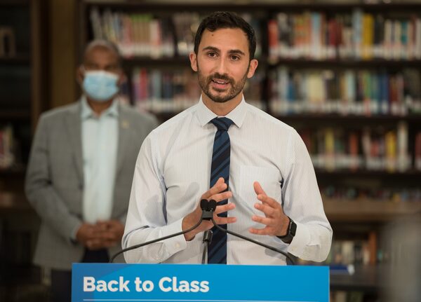 Ontario Minister of Education Stephen Lecce makes an announcement at St. Robert Catholic High School in Toronto, on Aug. 4, 2021.Tijana Martin/The Canadian Press