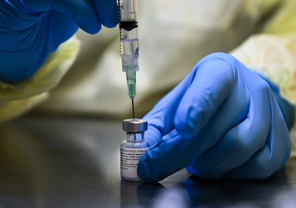 A health-care worker prepares a dose of the Pfizer-BioNTech COVID-19 vaccine, in Toronto, on Jan. 7, 2021.Nathan Denette/The Canadian Press