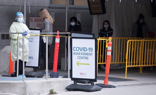A nurse stands outside a COVID-19 testing centre at Women’s College Hospital, in Toronto, on April 9, 2021.Frank Gunn/The Canadian Press