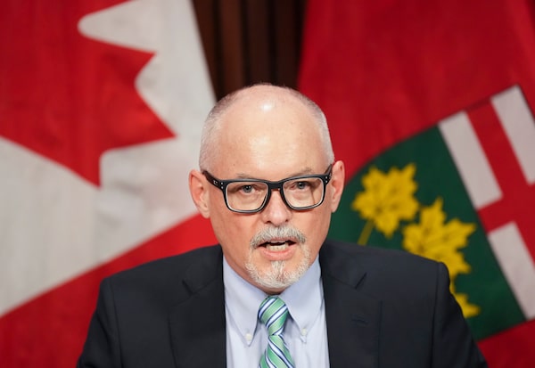 Dr. Kieran Moore, Ontario Chief Medical Officer of Health, speaks at a press conference at the legislature in Toronto on April 11, 2022.Nathan Denette/The Canadian Press