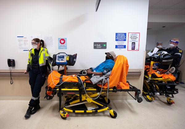 Paramedics transfer patients to the emergency room triage but have no choice but to leave them in the hallway due to an at capacity emergency room at the Humber River Hospital in Toronto on Jan. 25.The Canadian Press
