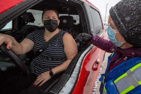 Dr. Elaine Ma administers a vaccine during a drive through COVID-19 vaccine clinic at St. Lawrence College in Kingston, Ont., in January, 2022.Lars Hagberg/The Canadian Press
