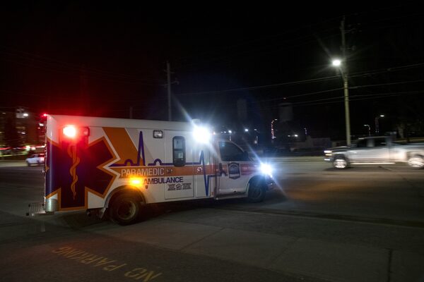 An ambulance leaves the Cochrane District EMS station with its emergency lights on in Timmins, Ont. on April 10, 2021.Fred Lum/the Globe and Mail