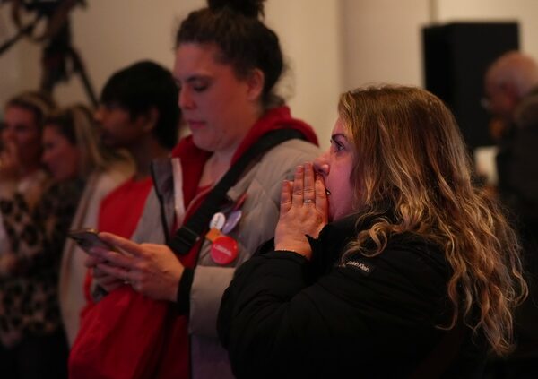 A crowd of a few dozen Liberal supporters at the party’s election-night headquarters watched quietly as the CBC projected a PC majority not long after polls closed. Many stood with arms folded in front of the screen but did not seem surprised by the result. There were moments of applause for candidates who were faring well in individual seats.