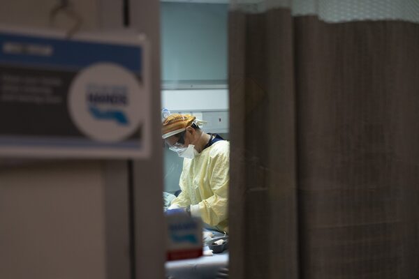A health-care worker treats a patient in the emergency department at Toronto’s Hospital for Sick Children on Nov. 30, 2022.Chris Young/The Canadian Press