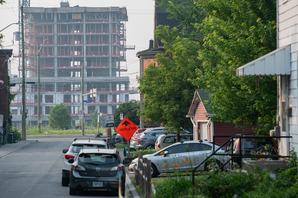 An apartment building construction site in the Lebreton Flats neighbourhood of Ottawa, on June 29. The Ottawa-Carleton board’s projections show that enrolment is expected to climb significantly at the Cambridge Street Community Public School once young families move into new housing units under construction in the area.Spencer Colby/The Globe and Mail