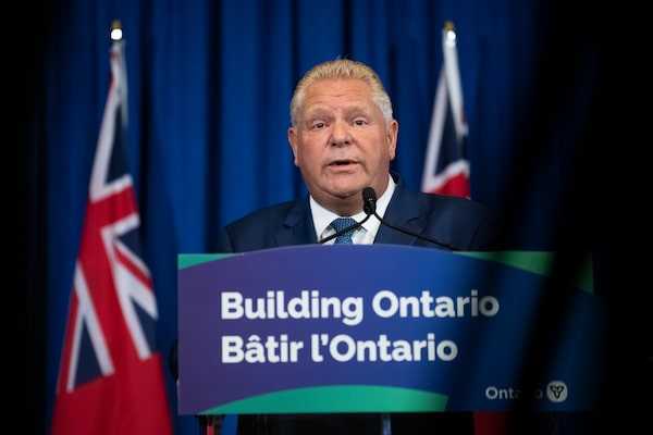 Ontario Premier Doug Ford takes questions from the media during a press conference at the Ontario Legislature on Sept 5, 2023.Fred Lum/The Globe and Mail
